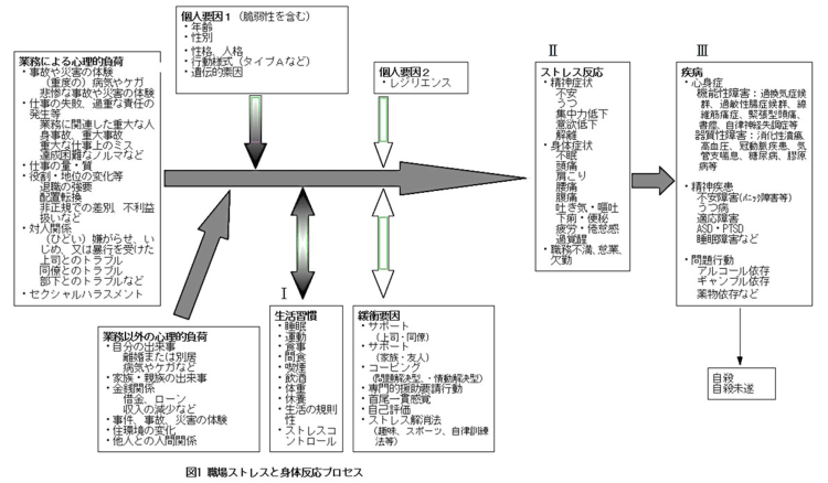 しかし、ストレッサーが体の適応可能な範囲を超えた強いものであったり、⻑期間持続するような場合に は、自律神経系や内分泌系、免疫系がホメオスタシスを保てなくなり、心身症を引き起こすことがありま す。また、原因となるストレスの種類により次の2種類に分けられます。
