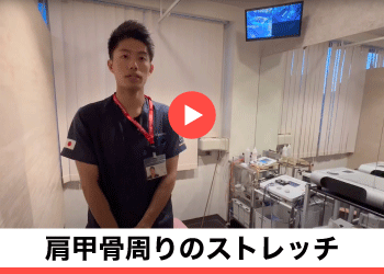 パソコン筋に対し早く改善する為、肩関節の位置や呼吸法等の指導を行い対策をしていきます。