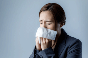 | アレルギー性鼻炎 | 季節性/通年性 | 透明で水っぽい | 連発しやすい | 日内変動(朝や夜に悪化など) | 目のかゆみ、涙、咳(後鼻漏) |