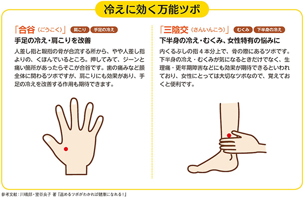 ▶ ツボ押しを組み合わせることで、温め効果が倍増!
