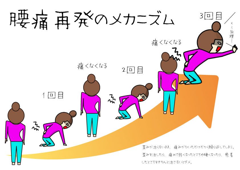 痛みが取れたら終わりではありません。 「なぜ腰痛になったのか?」という根本原因(姿勢や筋力不足)を解決しなければ、また数ヶ月後に再発してしまいます。