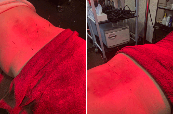 鍼灸治療では、痛みの緩和・血流改善・筋緊張の緩和を目的に施術を行います。